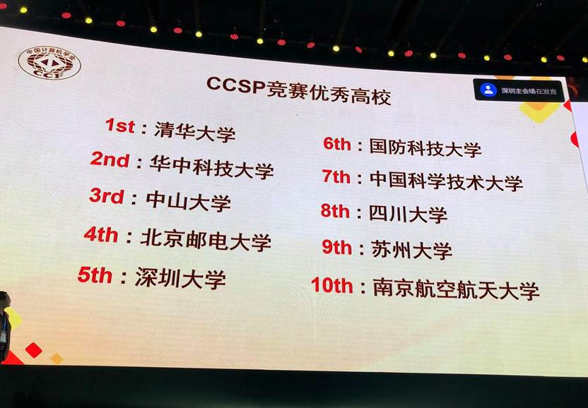 由中国计算机学会CCF主办的2021年大学生计算机系统与程序设计竞赛(CCSP2021),于2021年12月15日在深圳和全国多个分赛站同时拉开战幕,经过12个小时的鏖战,最终我校获得全国高校团体第四名,必赢优惠y272net(国家示范性软件学院)2020级本科生王佳禾获个人全国第8名。全国赛我校共2人获得金奖,4人获得银奖,4人获得铜奖。在华北区分赛中,我校包揽前5名。